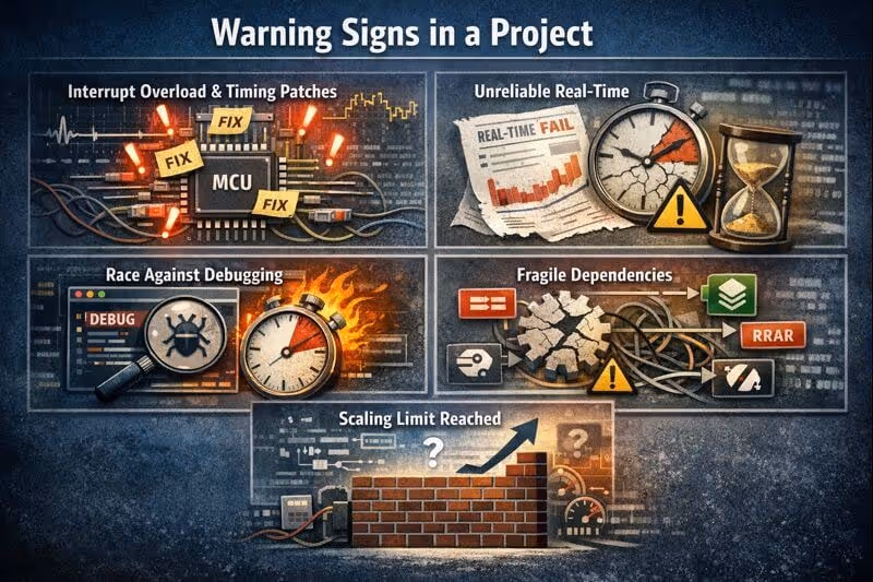 A microcontroller works well as long as the system can tolerate a certain degree of temporal unpredictability. The problem arises when processing frequency increases and timing requirements stop being “soft.” Even high-performance MCUs, such as Cortex-M7 devices clocked at 300–600 MHz, remain fundamentally sequential architectures in which every operation competes for CPU time with interrupt handling, peripheral access, and system overhead. As Donald Knuth, Recipient of the ACM Turing Award, famously observed: “time is the most precious resource in a computing system, and managing it explicitly is often harder than managing space".As a result, latency is no longer constant, and jitter becomes an inherent property of the platform rather than an implementation flaw. At this stage, the project often still “works”, but it becomes increasingly difficult to reason about it in terms of guaranteed response times. Code starts to rely on implicit timing assumptions that are not formally enforceable. A small configuration change, a different interrupt order, or an additional background task consuming even 5–10% CPU time can disrupt system behavior in ways that are hard to predict and even harder to debug.The natural reaction is further optimization:
