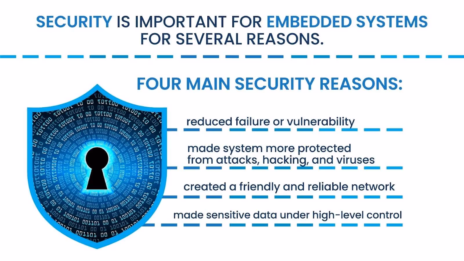 Firstly, embedded systems are often used in critical applications such as healthcare, automotive, and aerospace, where any failure or vulnerability can have serious consequences.Secondly, embedded systems often have limited resources and may not have the same level of security features as other systems. This makes them vulnerable to attacks such as malware, viruses, and hacking.Thirdly, embedded systems are often connected to other systems or networks, making them potential entry points for attackers to gain access to sensitive data or systems. Therefore, it is essential to ensure that security measures are implemented in embedded systems to protect against these threats.