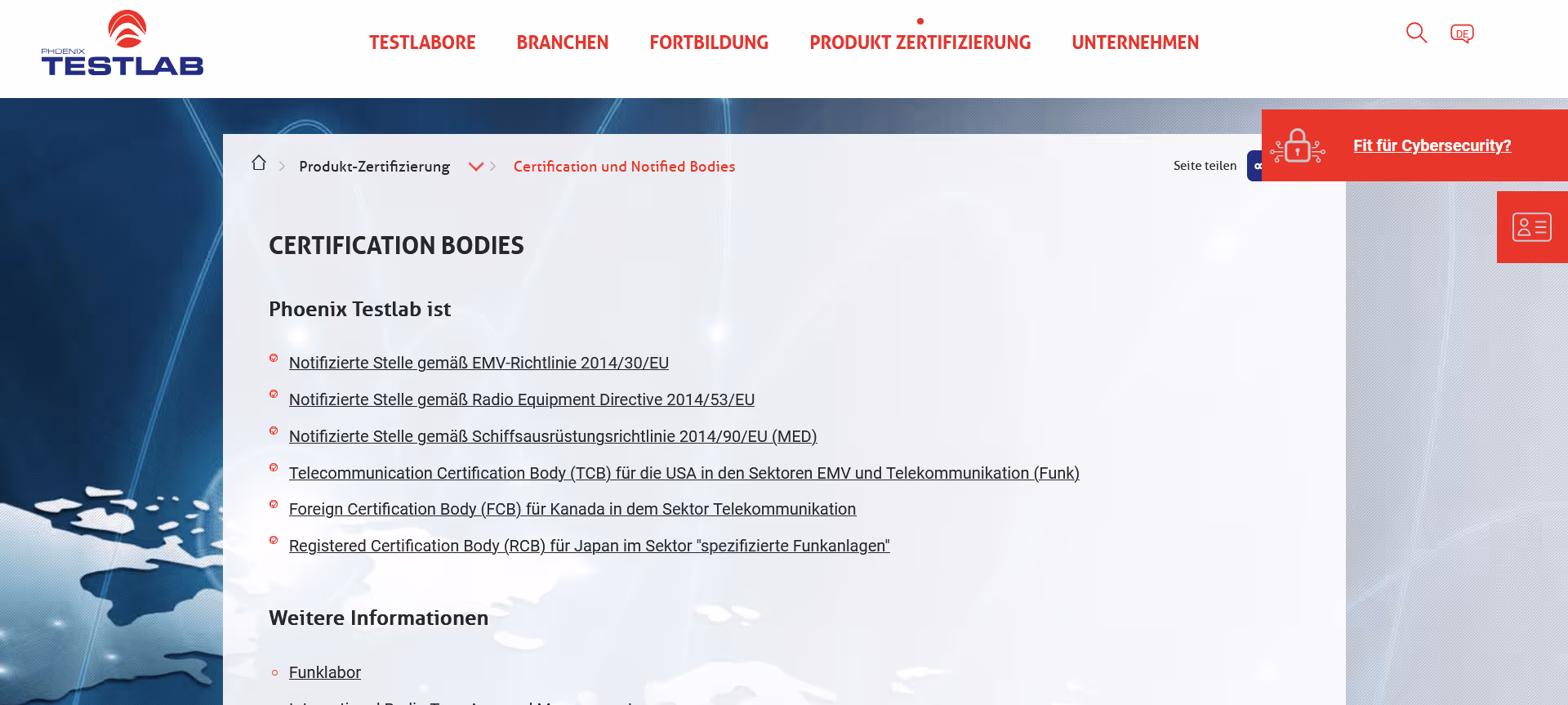 A German company specializing in EMC testing, radio testing, and CE certification. Phoenix Testlab particularly cooperates with manufacturers of telecom, automotive, and industrial automation equipment, offering fast turnaround times. Established in 1994 in Blomberg, it is EU Notified Body under EMC (2014/30/EU), RED (2014/53/EU), and MD (2006/42/EC). The facility features multiple anechoic chambers, including a 10-meter chamber for radiated emission testing. It also supports certification under FCC, ISED, and industry standards such as ETSI.Pros:
