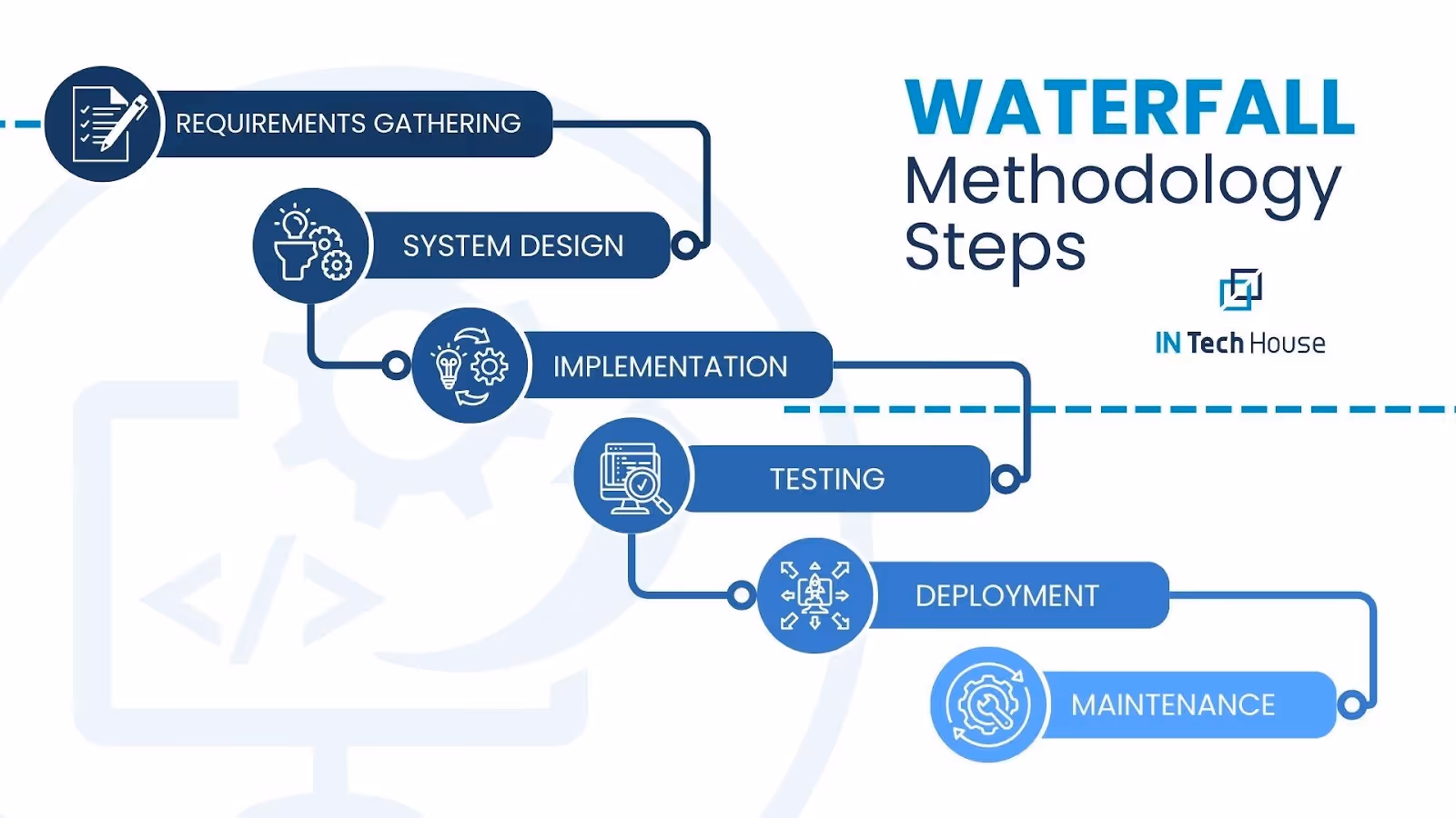 The waterfall methodology is a sequential approach to software development, where each stage is completed before moving on to the next. The typical stages in the waterfall SDLC life cycle include:Waterfall Methodology Steps