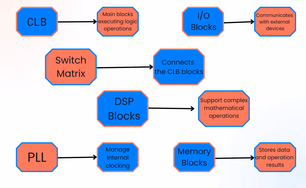 At the core are the CLBs, which are much more than just standard logic gates. These blocks contain:
